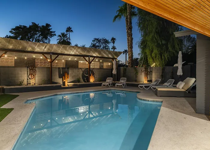 Durante il soggiorno presso la Villa Modern Retreat With Pool Hot Tub Outdoor Kitchen Scottsdale, gli ospiti possono approfittare di una jacuzzi o visitare il Big Surf, situato a 3 km. Situata a circa 15 minuti in macchina dall'Università Statale dell'Arizona, la villa vanta una terrazza con vista sul giardino.